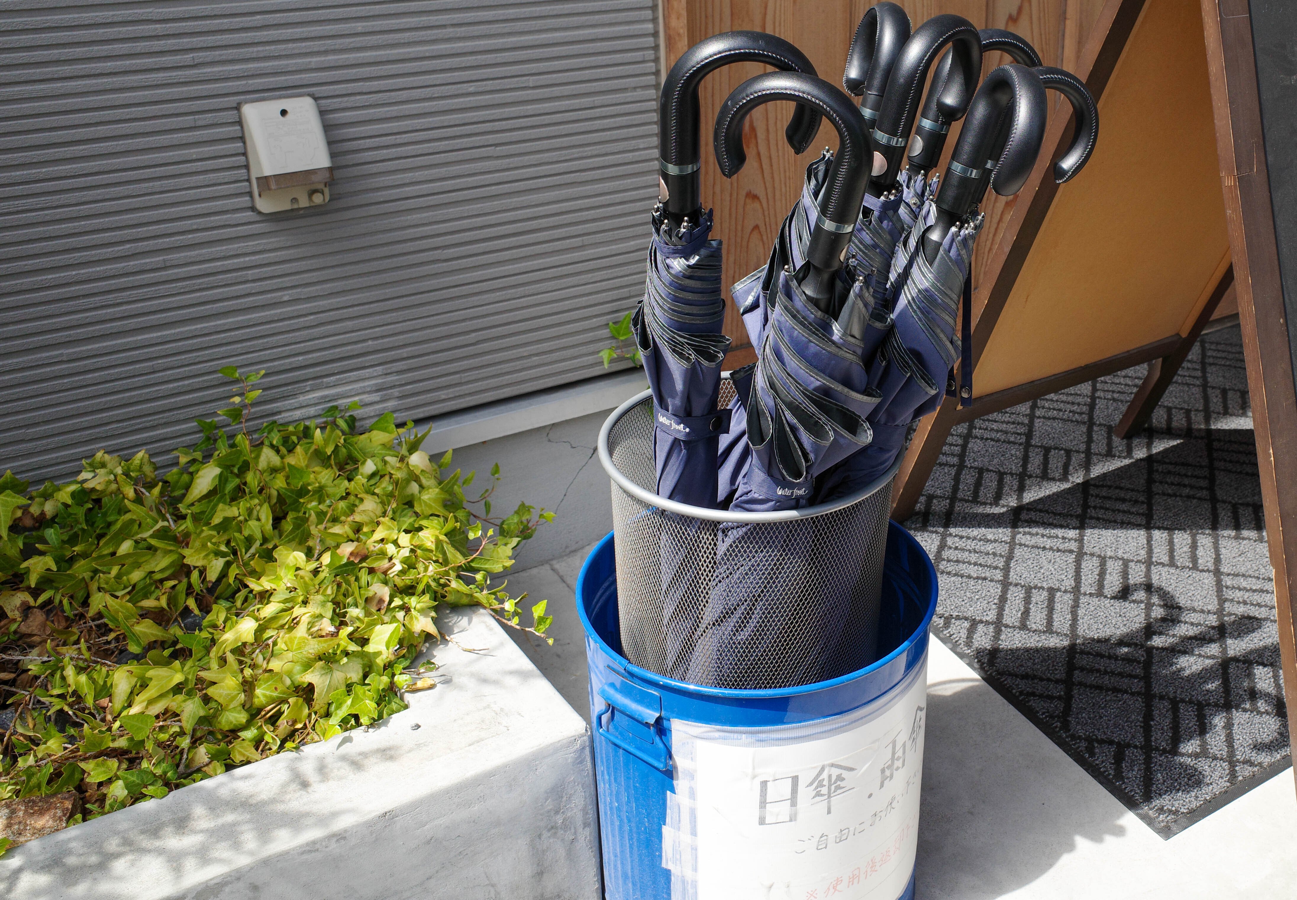 駐車場は店前と店裏で約30台。それでも混み合う時間帯はどちらも満車になるほどの人気ぶり。この日も直前に1台出てくれたおかげで入れた、というレベルの混雑で、店前には大行列。結局1時間ちょっと待って入店しました。日差しが強い日でしたが、「おうどん 瀬戸晴れ」さんでは日傘の貸し出しもしてくれていて、とても助かりました。