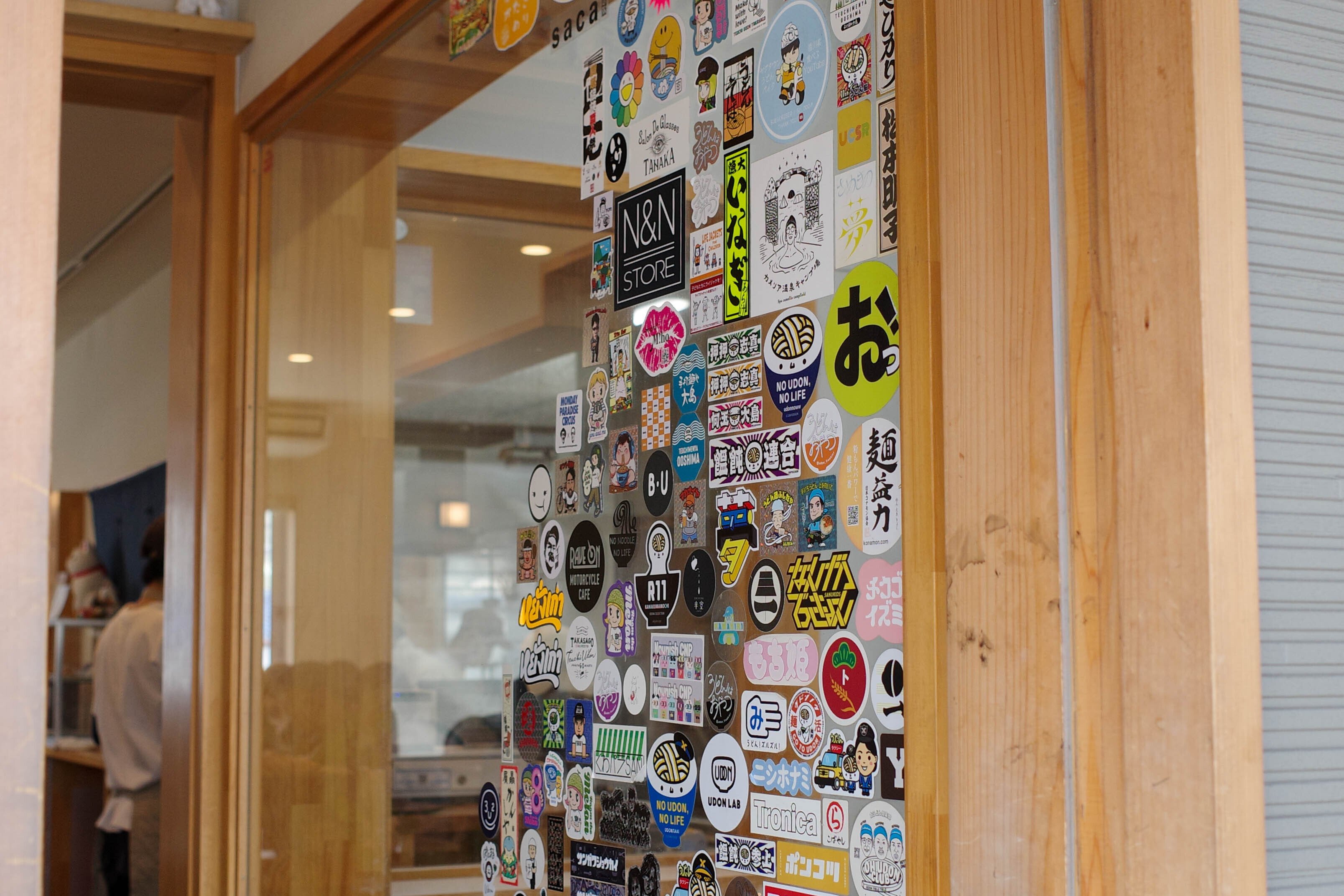 「うどんタクシードライバー運転手見習い うどん脳ツルちゃん」と「初代うどんタクシーYouTubeドライバー 純ちゃん」のステッカーを見つけました。これらは、恐らくうどんタクシーチャンネル(Youtube)でも「おうどん 瀬戸晴れ」さんへお邪魔したときにお渡しさせていただいたステッカーたちですかね?!
