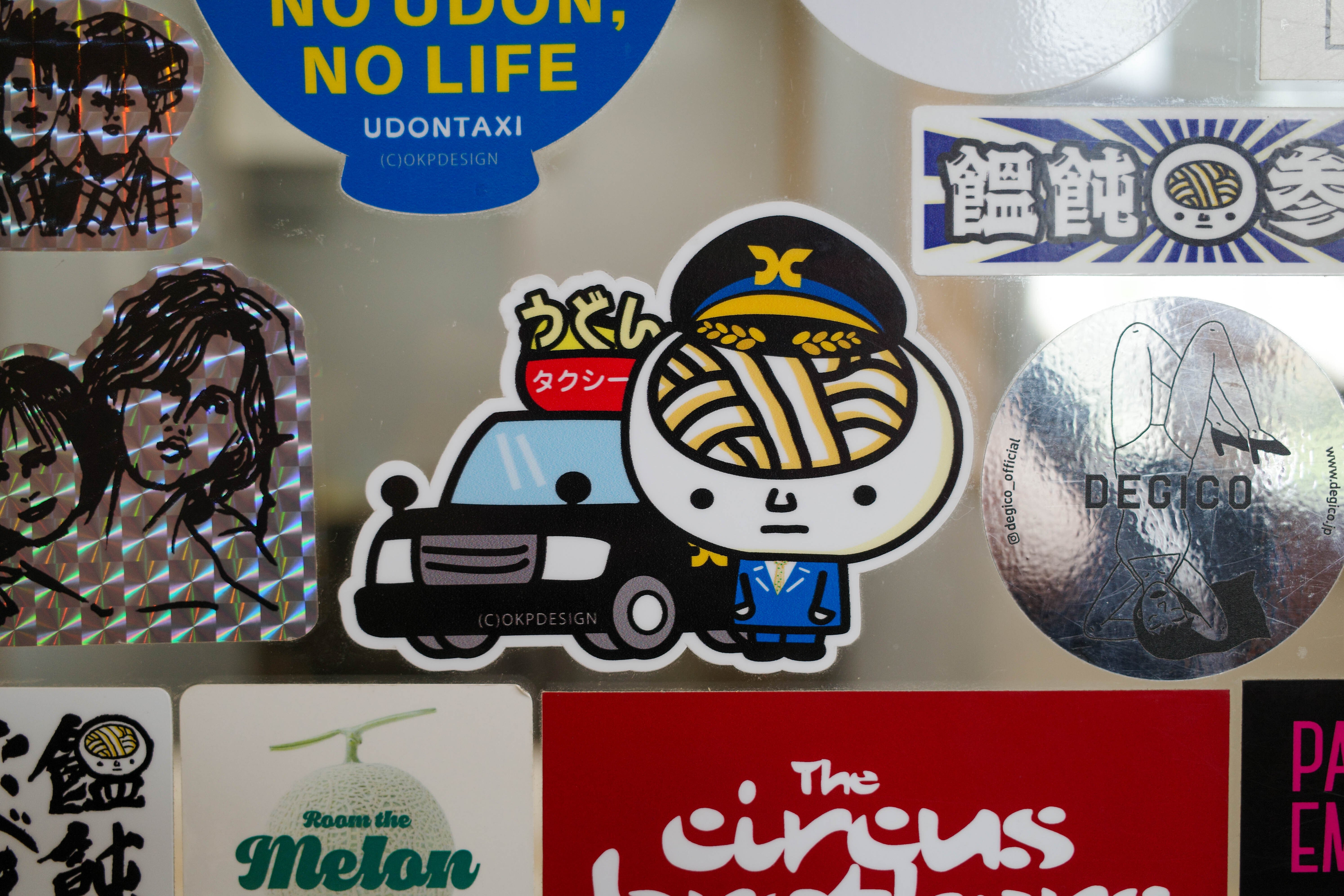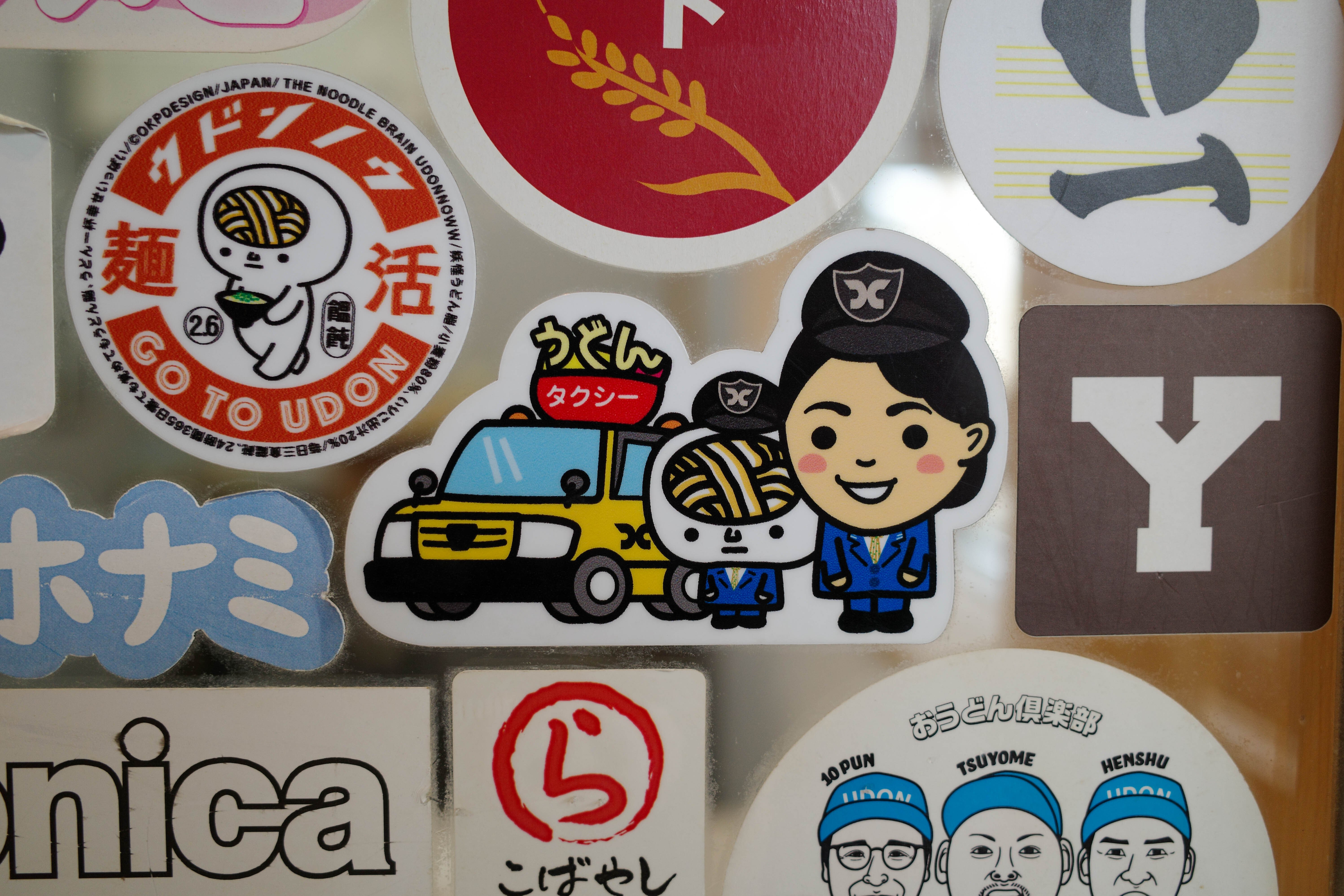 そう! 弊社コトバスグループのサービス商品でもある「うどんタクシー」に関するステッカーたち!!