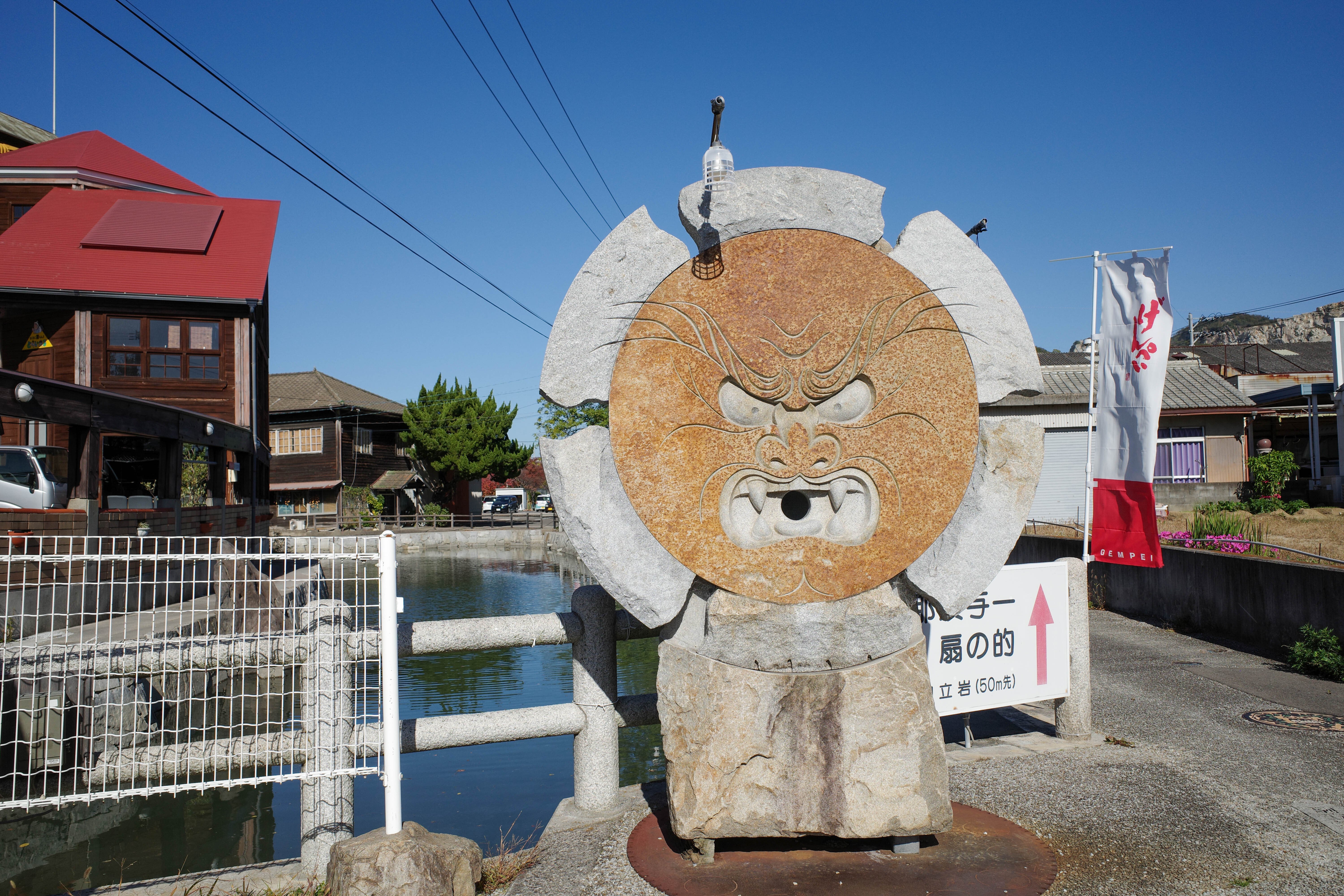 足場の岩に足をかけ、「ひいふつ」と掛け声を上げながら矢を放つと、弓の音が響き、放たれた矢は扇の要のすぐそばへ的中。扇はふわりと宙へ舞い、瀬戸内の風にあおられながら海へ落ちていきました。