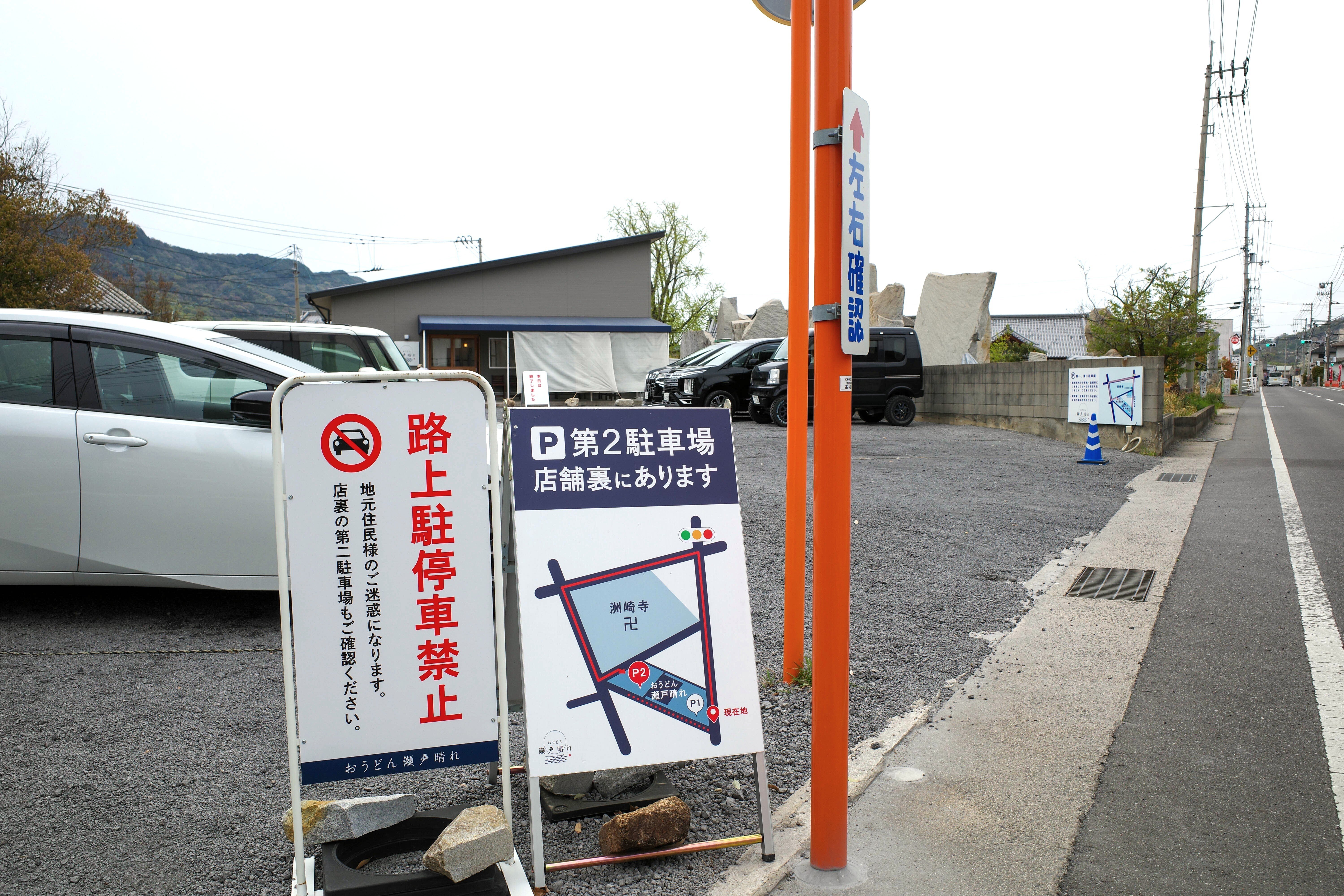 「おうどん 瀬戸晴れ」さんの駐車場は、お店の前と裏にあります。